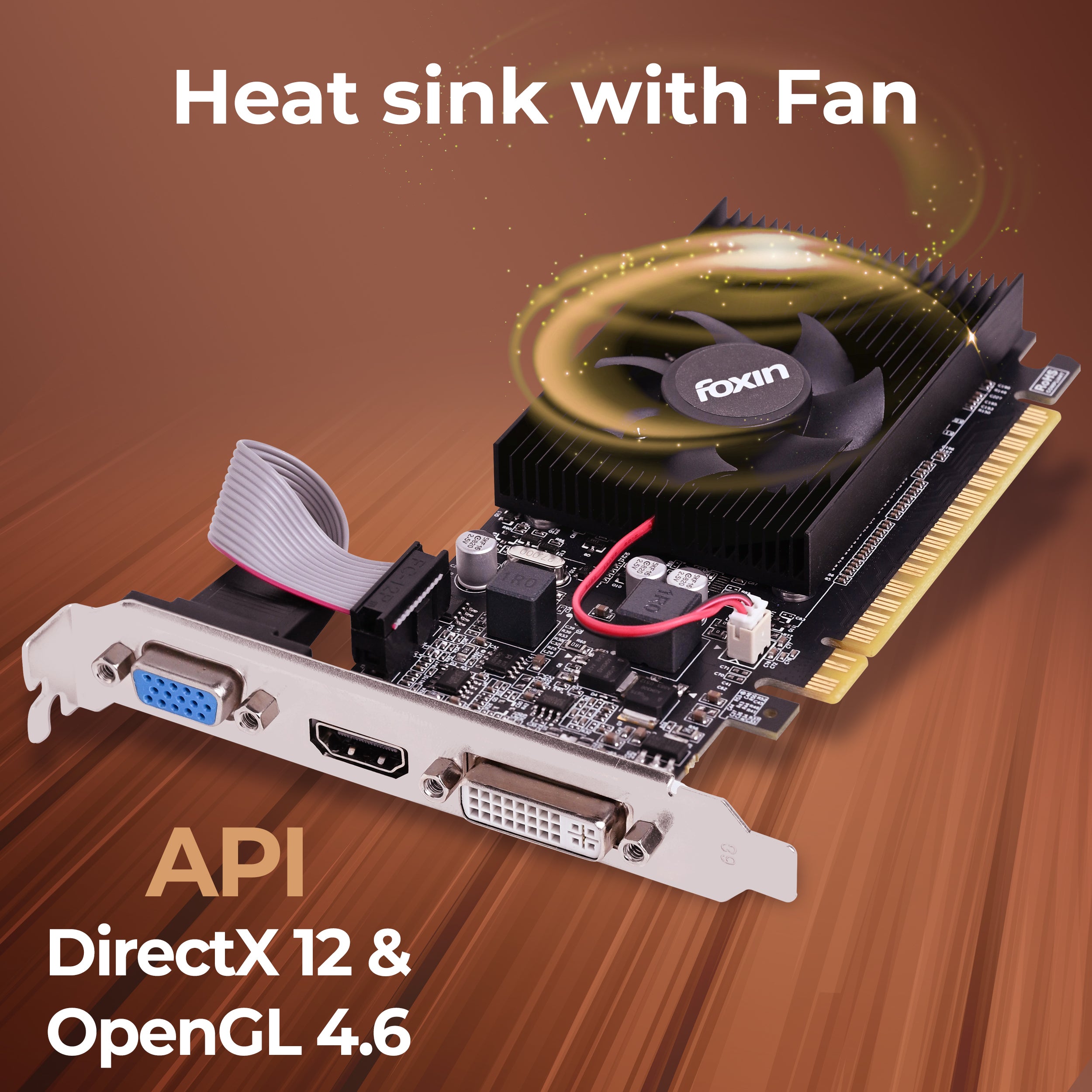 The Foxin 4GB DDR3 GPU ensures fast data transfer with PCIe 3.0 interface. Equipped with DirectX 12 and OpenGL 4.6 support, it enhances gaming, rendering, and smooth performance for Windows PCs.