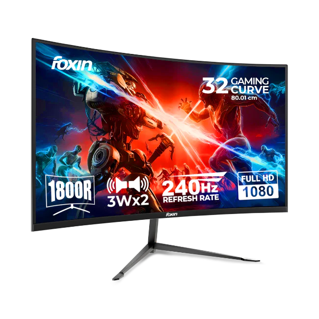 The Foxin Phantom curved gaming monitor 32 inch offers a 1800R curvature for panoramic viewing, wall mount option for space saving, and a slim, stylish profile that enhances any gaming desk. Experience deep immersion with a curved screen monitor gaming setup that puts you at the center of the action.