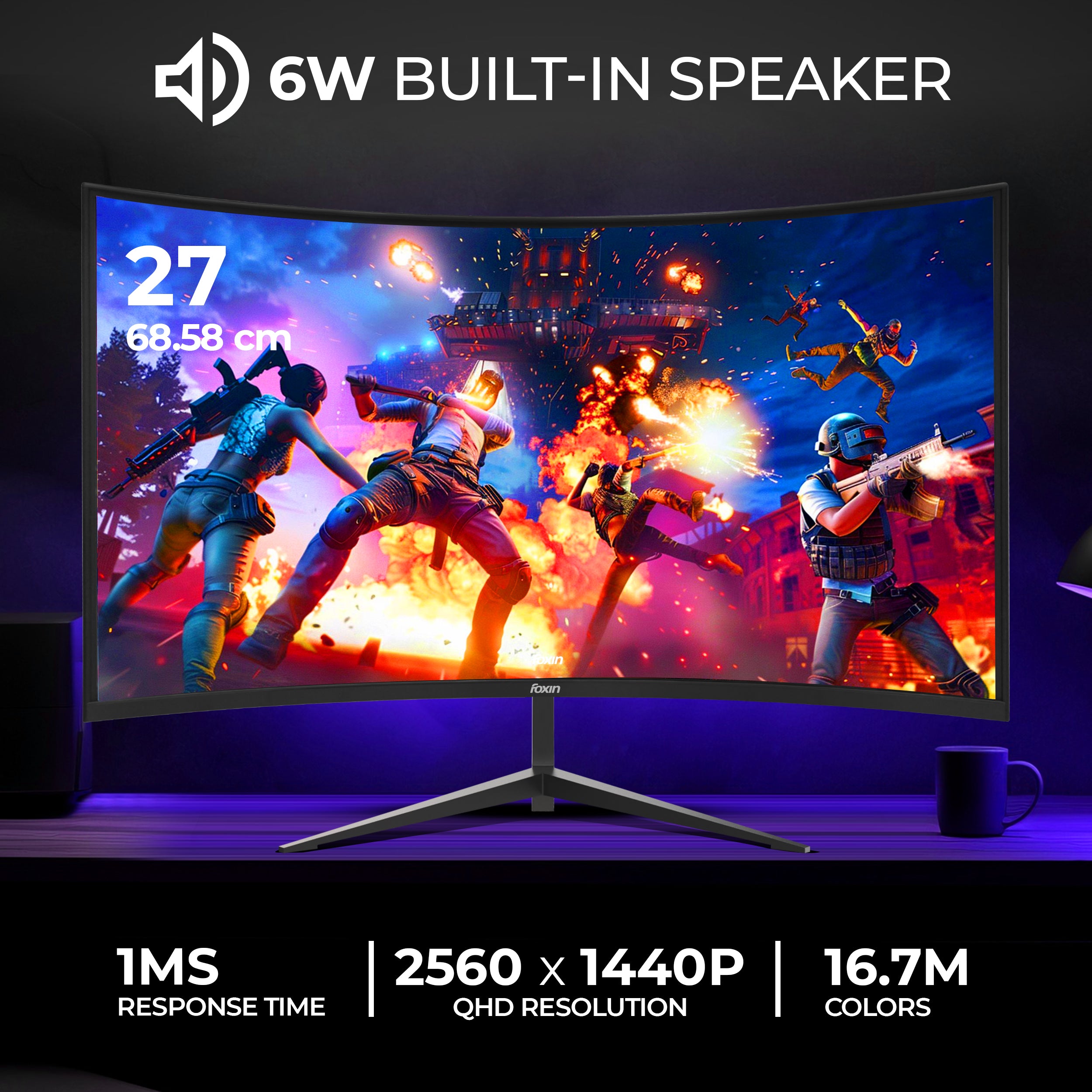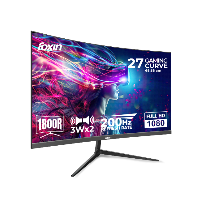 The Foxin Phantom curved gaming monitor 27+ inch offers a 1800R curvature for panoramic viewing, wall mount option for space saving, and a slim, stylish profile that enhances any gaming desk. Experience deep immersion with a curved screen monitor gaming setup that puts you at the center of the action.