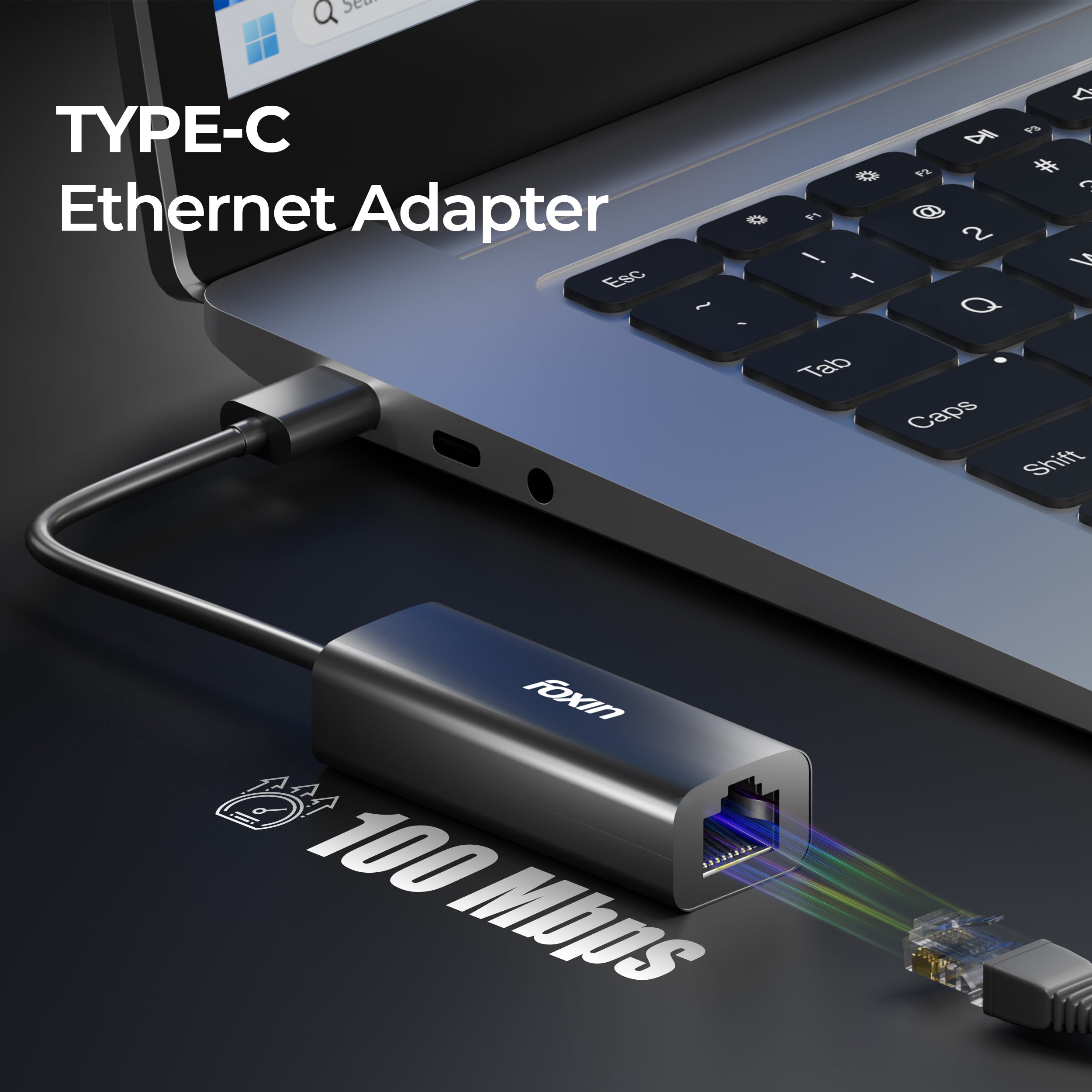 Fast 100 Mbps | USB Type-C to RJ45 | 9 cm long