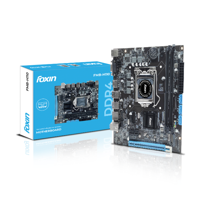 The Foxin FMB-H110 PRIME motherboard features an LGA 1151 motherboard socket with an H110 chipset, ensuring reliable performance.
