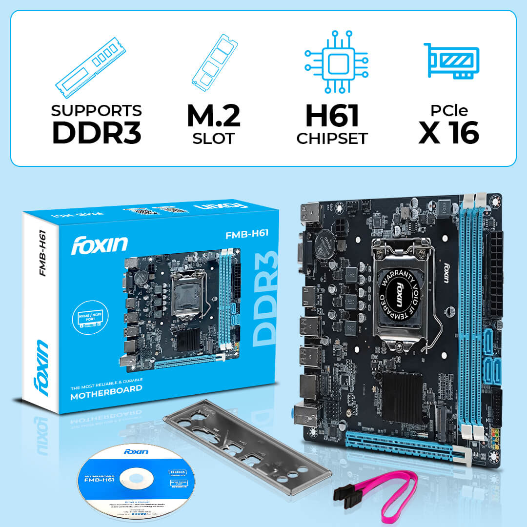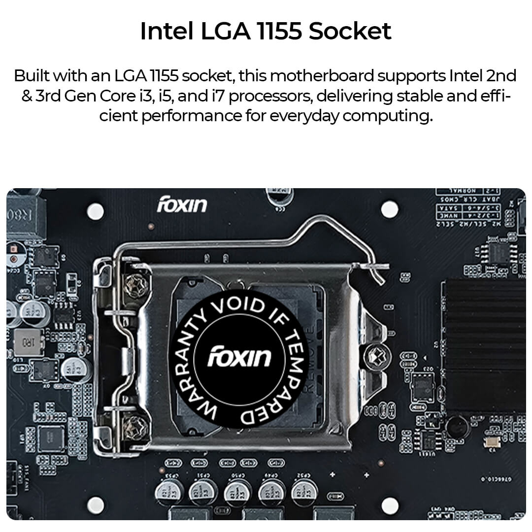 • Reliable H61 Motherboard for PC Performance – The Foxin FMB-H61 PRIME motherboard features an LGA 1155 socket with an H61 chipset, ensuring smooth data processing, HD video playback, and 3D graphics support for an enhanced computing experience.