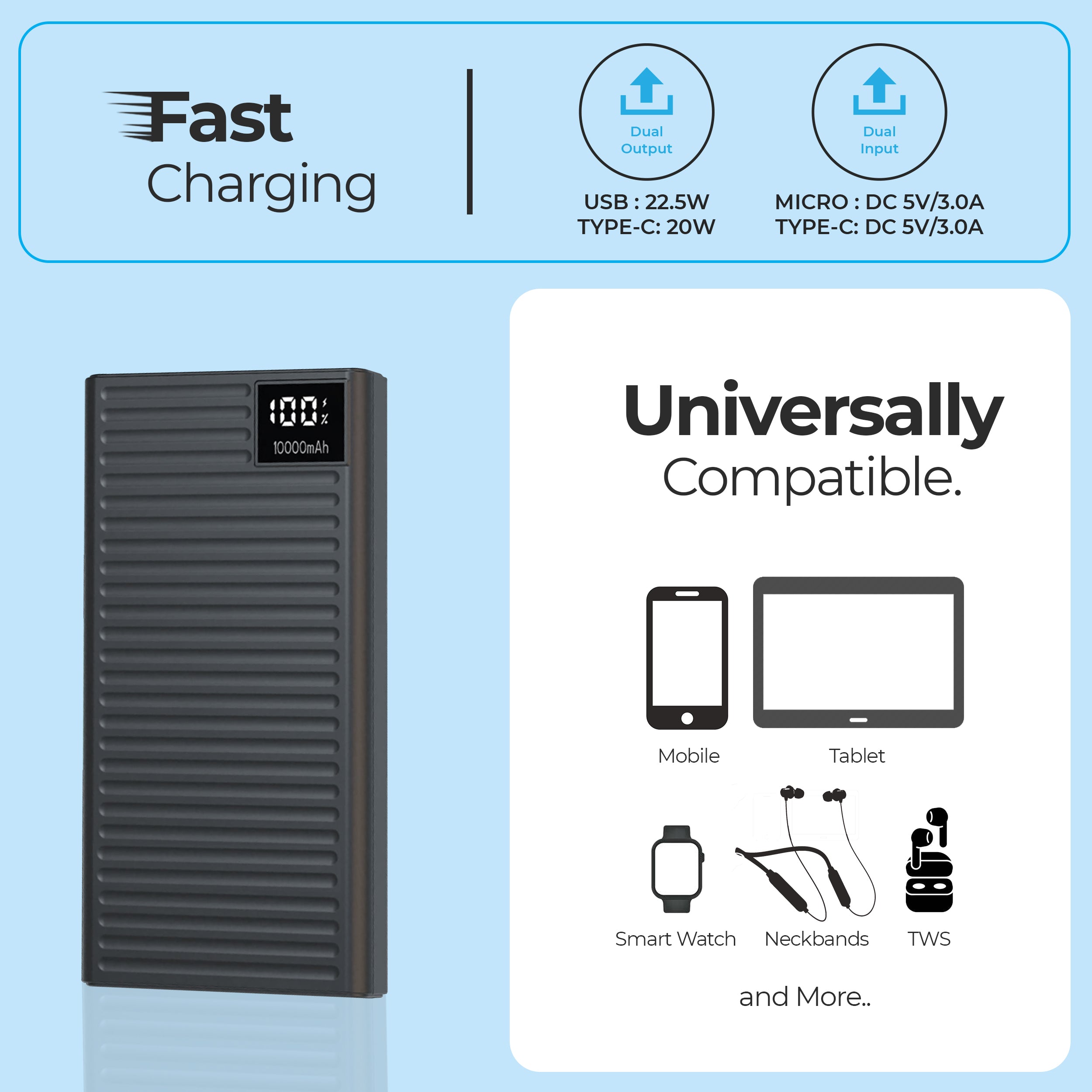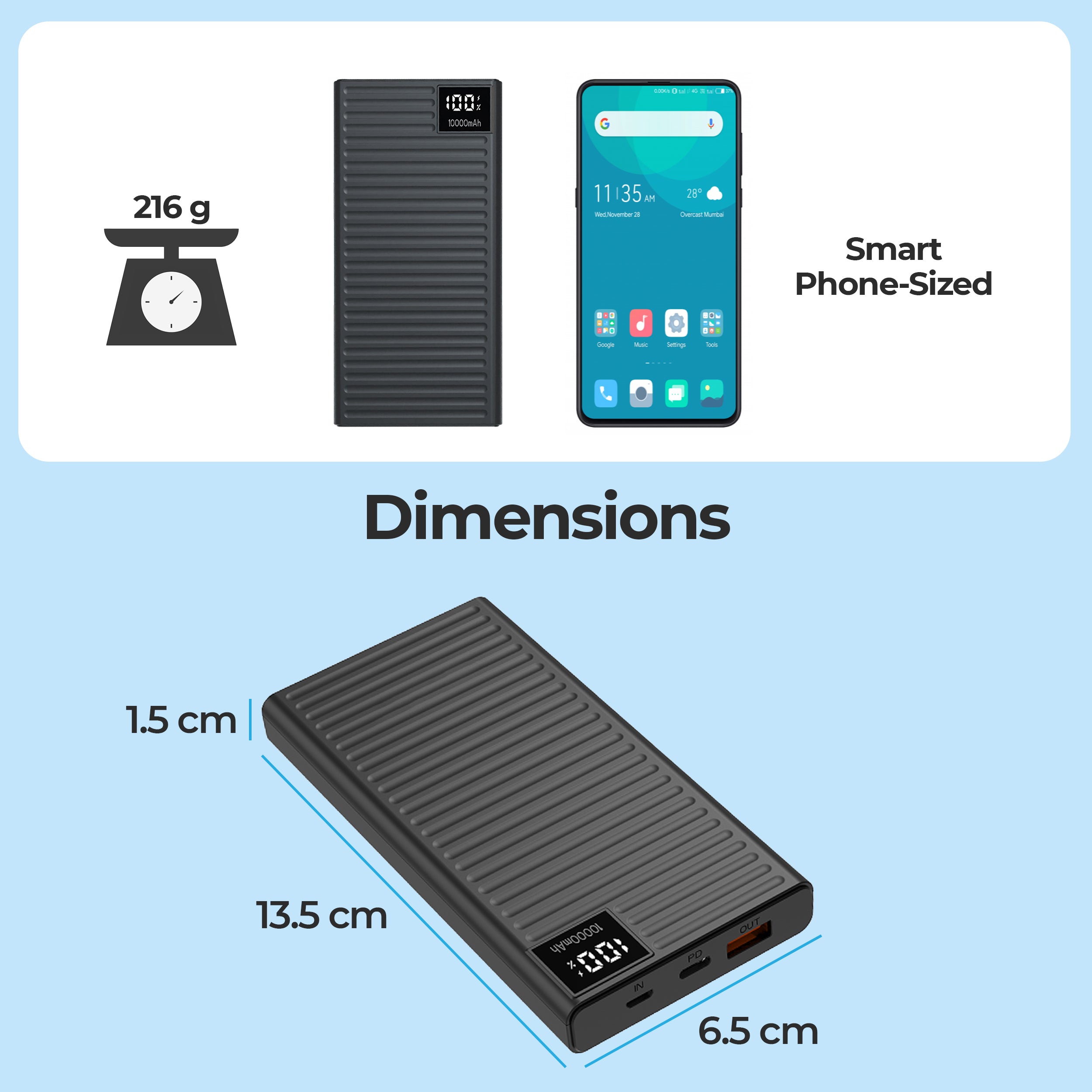 22.5W QC+PD Charging Ports: Enjoy the convenience of 22.5W QC+PD charging ports, offering optimal charging speeds for your gadgets, making it the best power bank for your on-the-go needs.