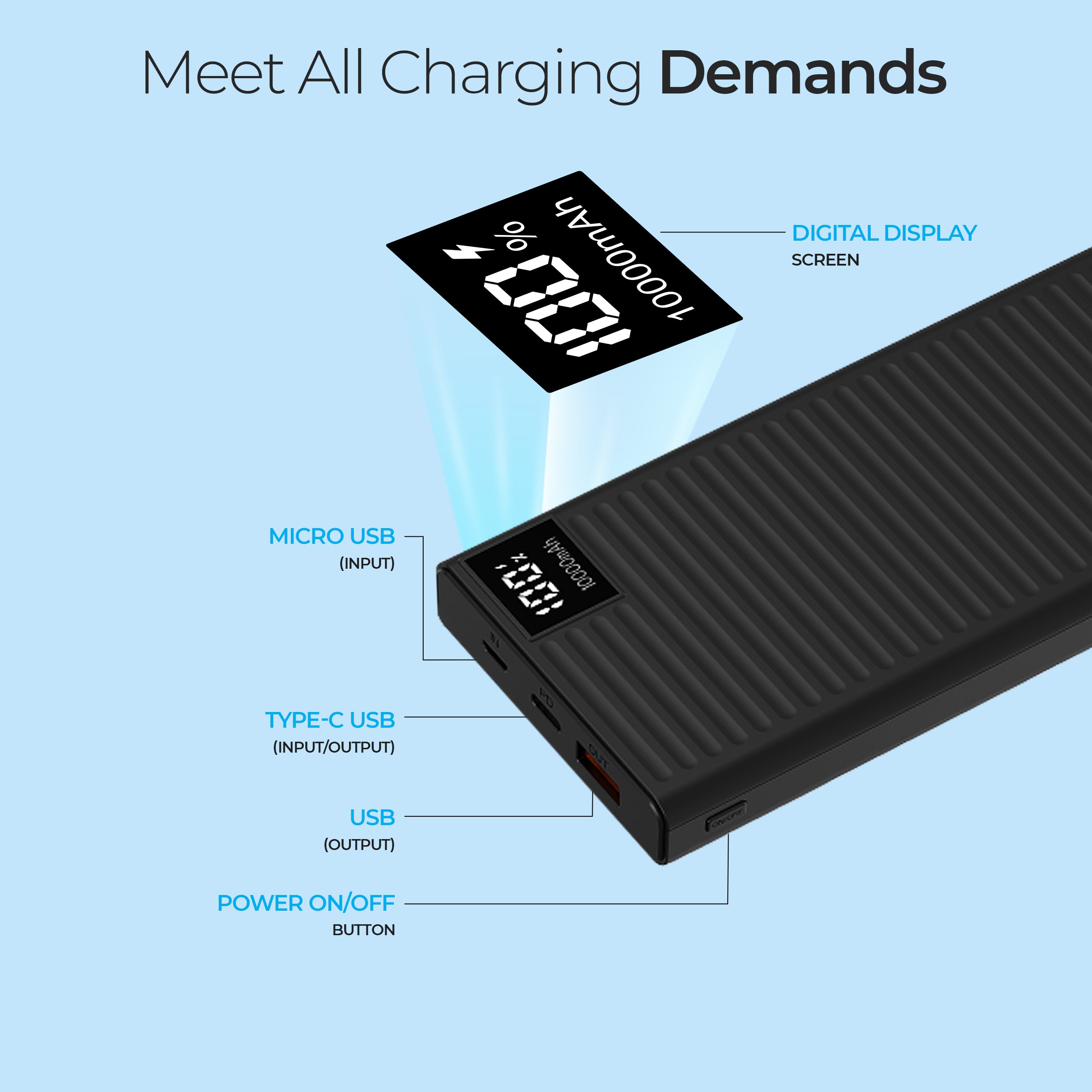 Digital LED Display: Stay informed about your power bank's status with the digital LED display, ensuring you always know the remaining battery and charging status.