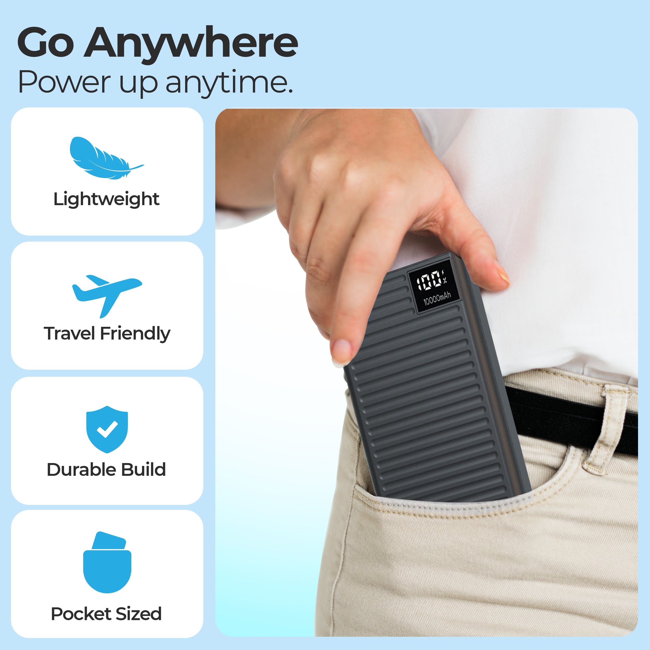 Lightweight, Sleek & Compact Design: Ideal for on-the-go charging, Foxin's power bank boasts a lightweight, sleek, and compact design, making it the perfect travel essential and mobile accessory.