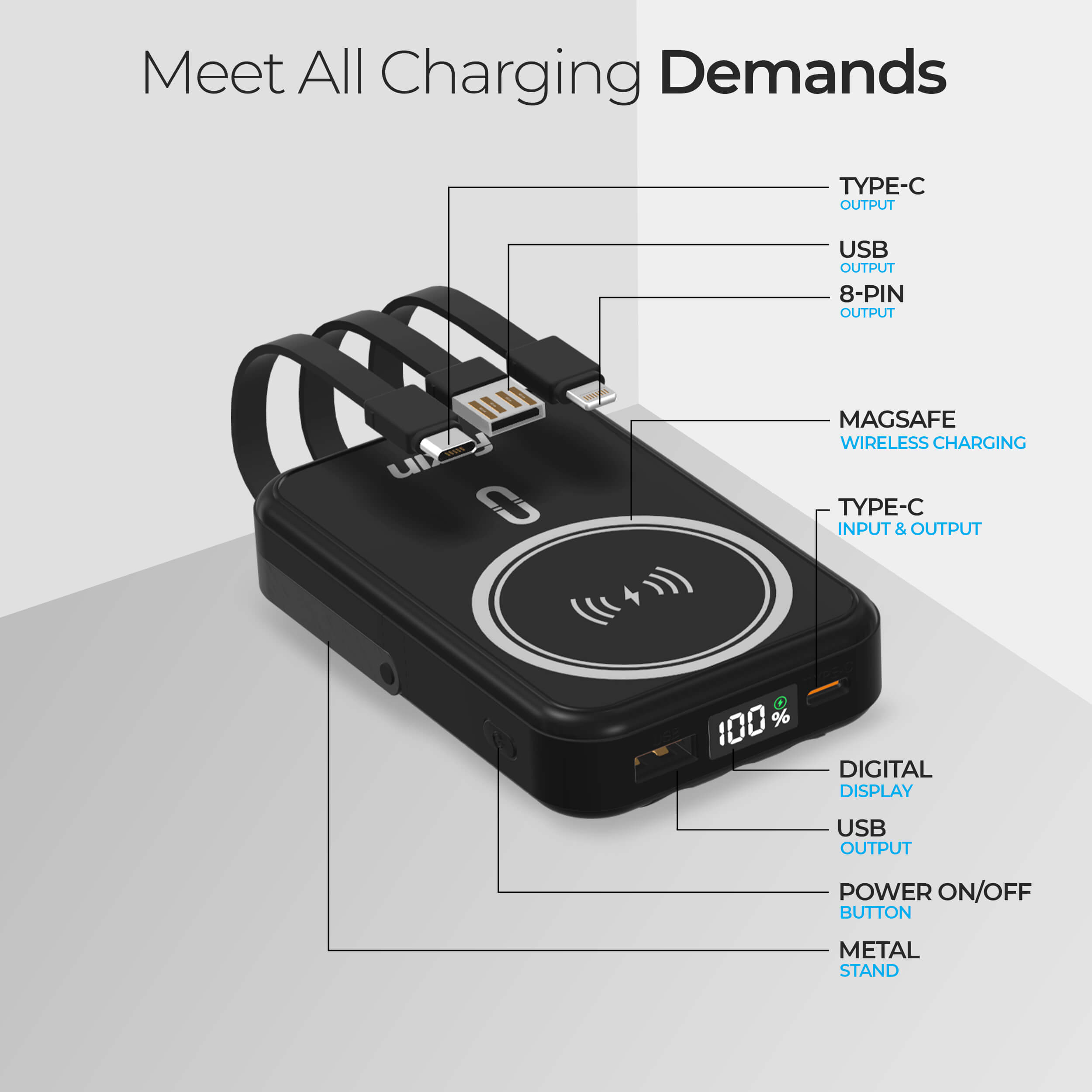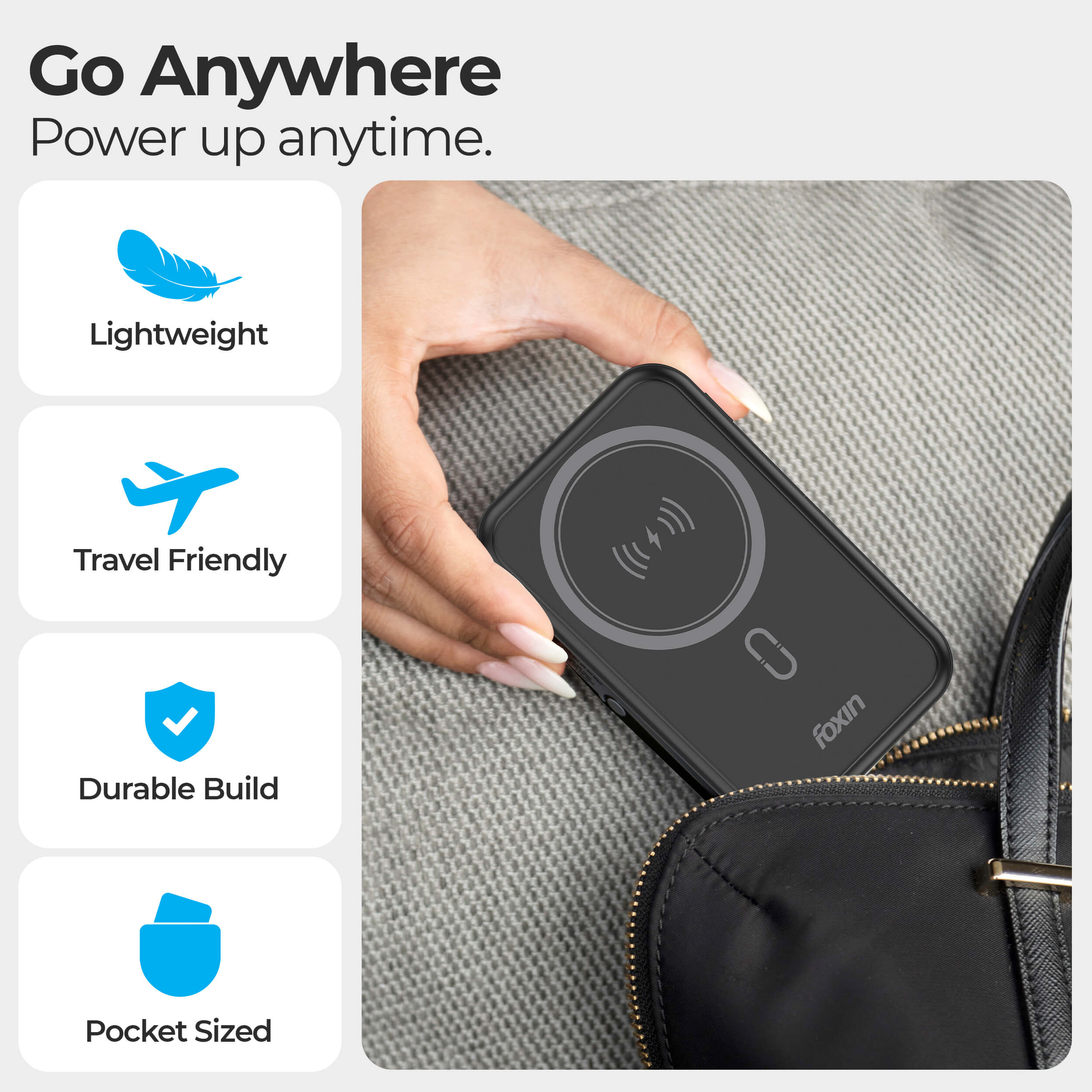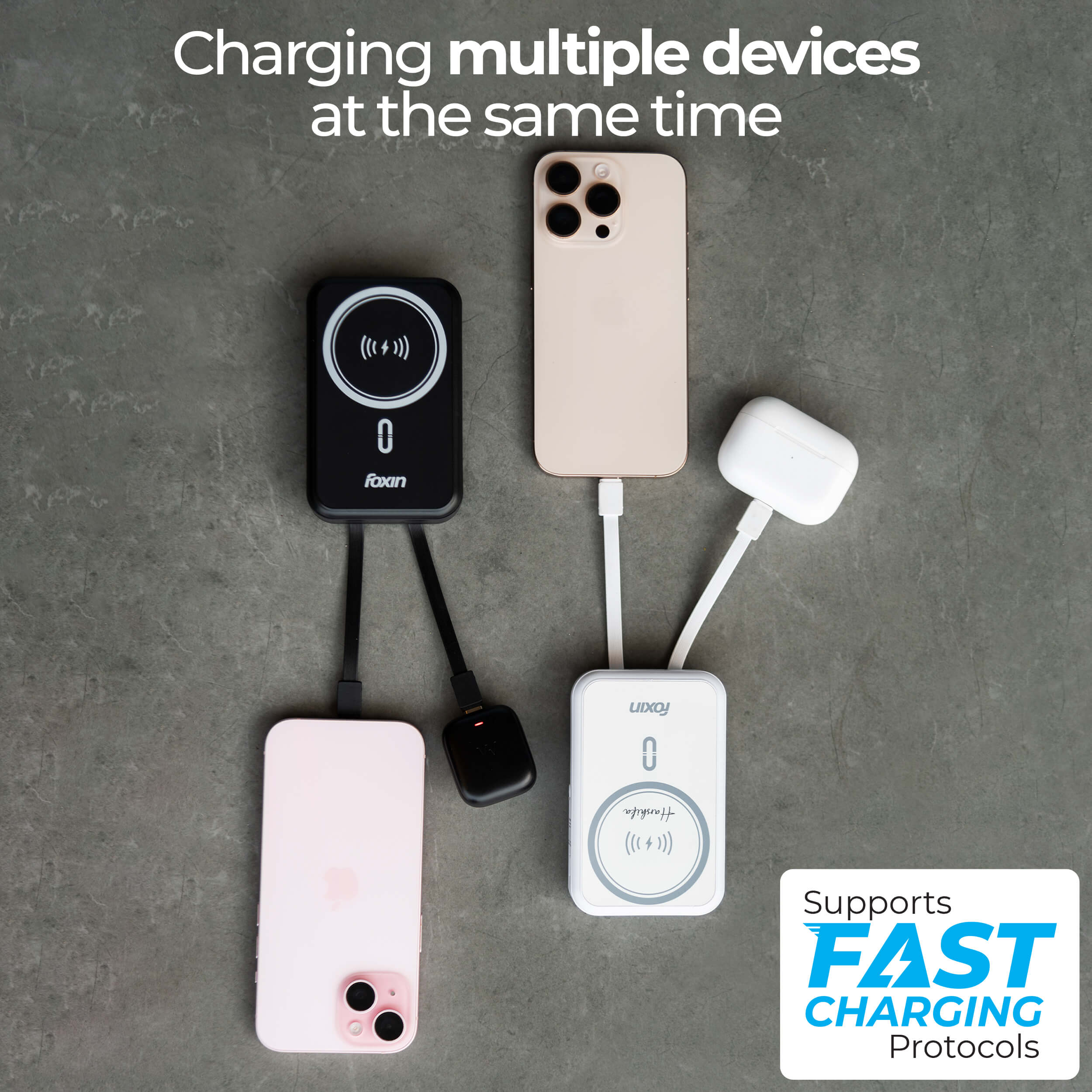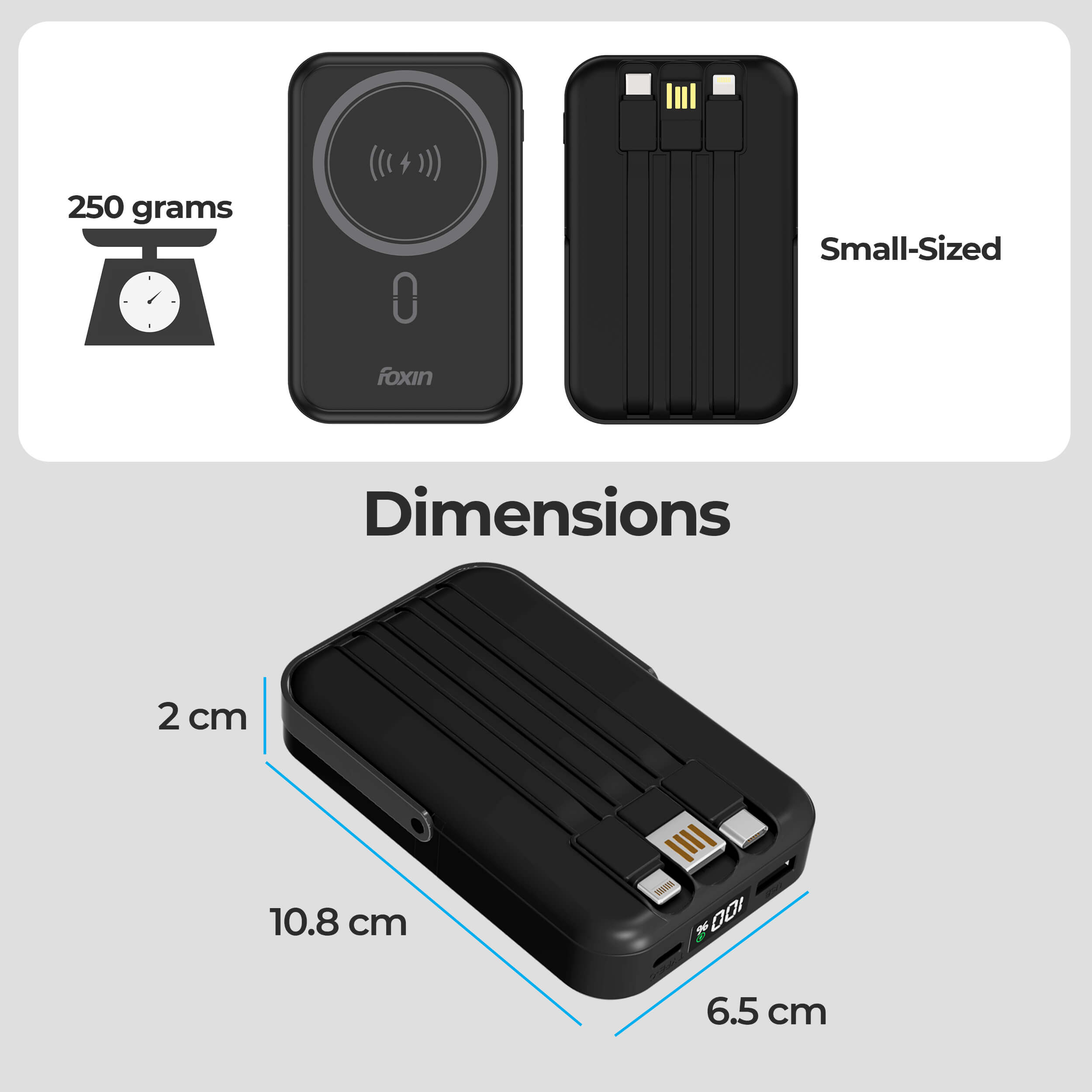 • 🔋 22.5W Fast Charging with 10000mAh Power: Foxin All-in-One Mag Pro delivers powerful 22.5W QC + PD wired charging and 15W wireless fast charging—ideal for on-the-go users needing reliable speed and performance.