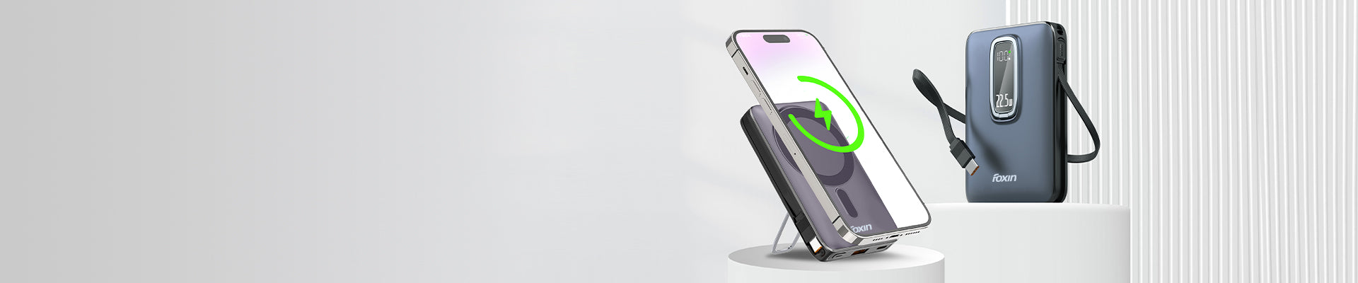 Foxin Powerbanks are compatible with most smartphones, tablets, Bluetooth devices, and more thanks to USB-A and USB-C output ports. They work with Android, iOS, and other USB-powered devices.