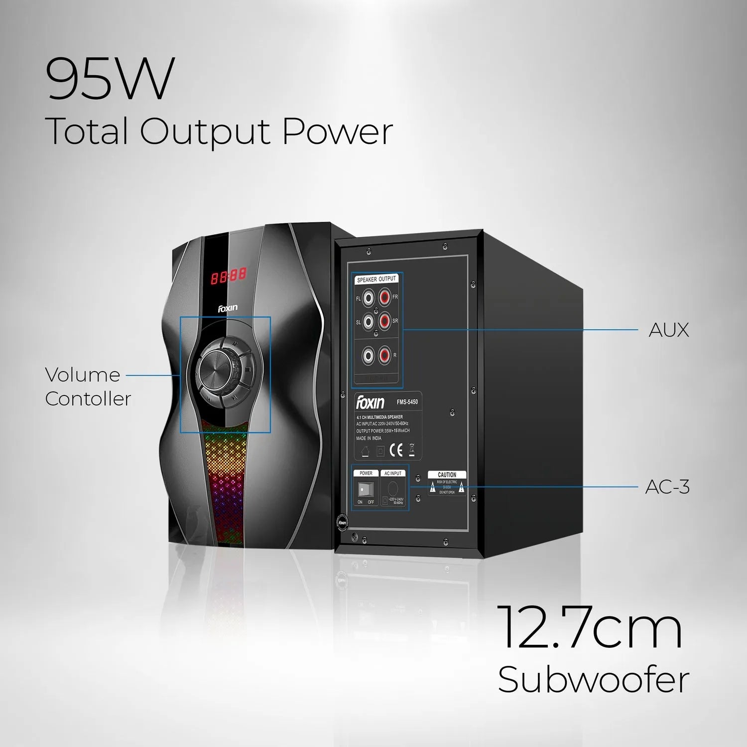 Foxin FMS 5450 Bluetooth 95W / 4.1 Home Theater with FM/USB/AUX/USB/SD/TV Support, Remote Control, Karaoke Support Wireless Mic & Stylish Design