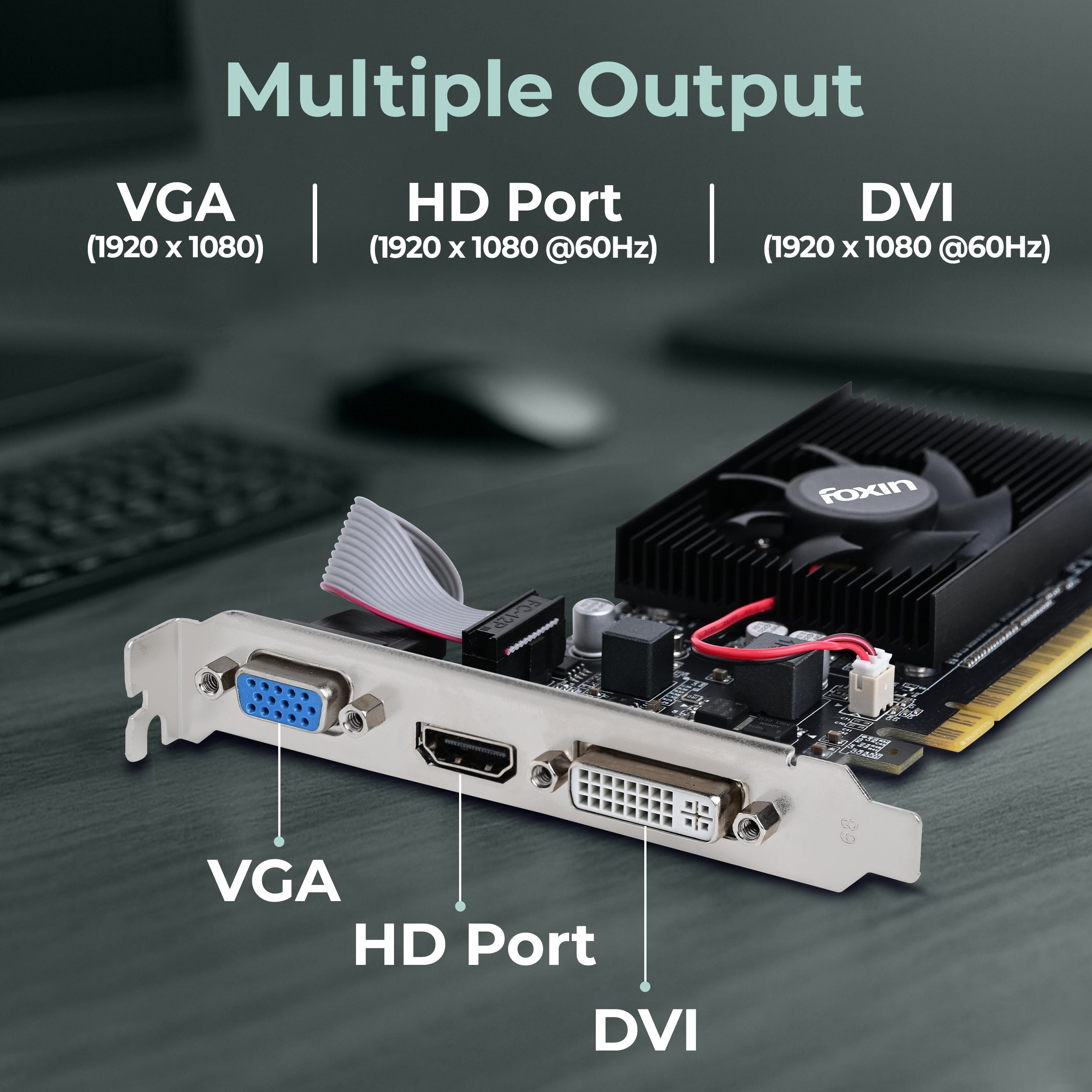 • Versatile Display Support – Outputs include HDMI, DVI, and VGA, supporting resolutions up to 1920 x 1080 @60Hz.