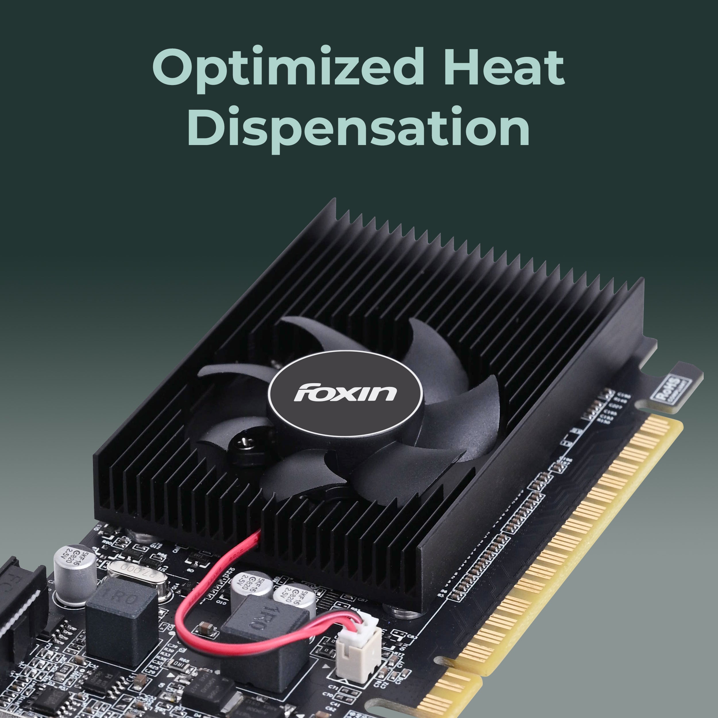 The Foxin GT 610 GPU provides reliable performance with PCIe 2.0 connectivity. Supporting DirectX 11 and OpenGL 4.5, it enhances multimedia, light gaming, and Windows PC performance.