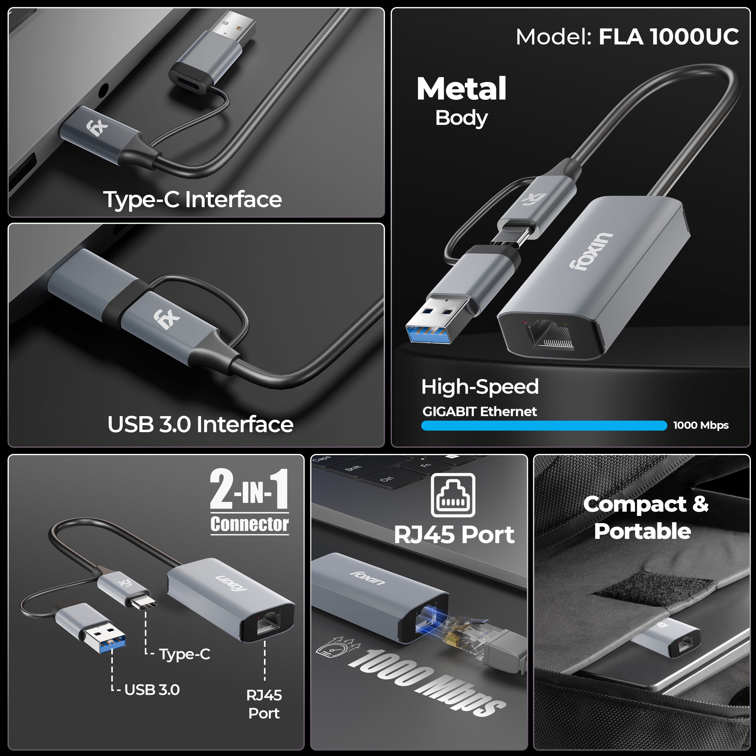 The Foxin FLA 1000UC Gigabit Ethernet Adapter delivers ultra-fast, stable internet connectivity through USB 3.0. Designed for laptops and PCs without LAN ports, it ensures seamless streaming, gaming, and browsing at lightning speed.