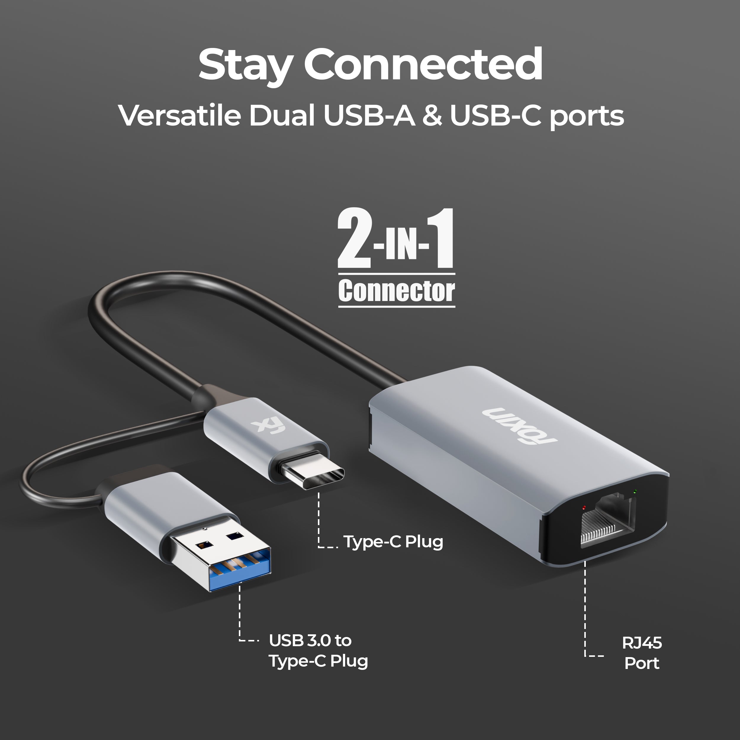 Up to 1000 Mbps | USB-A & Type-C | 11.4 cm long cable
