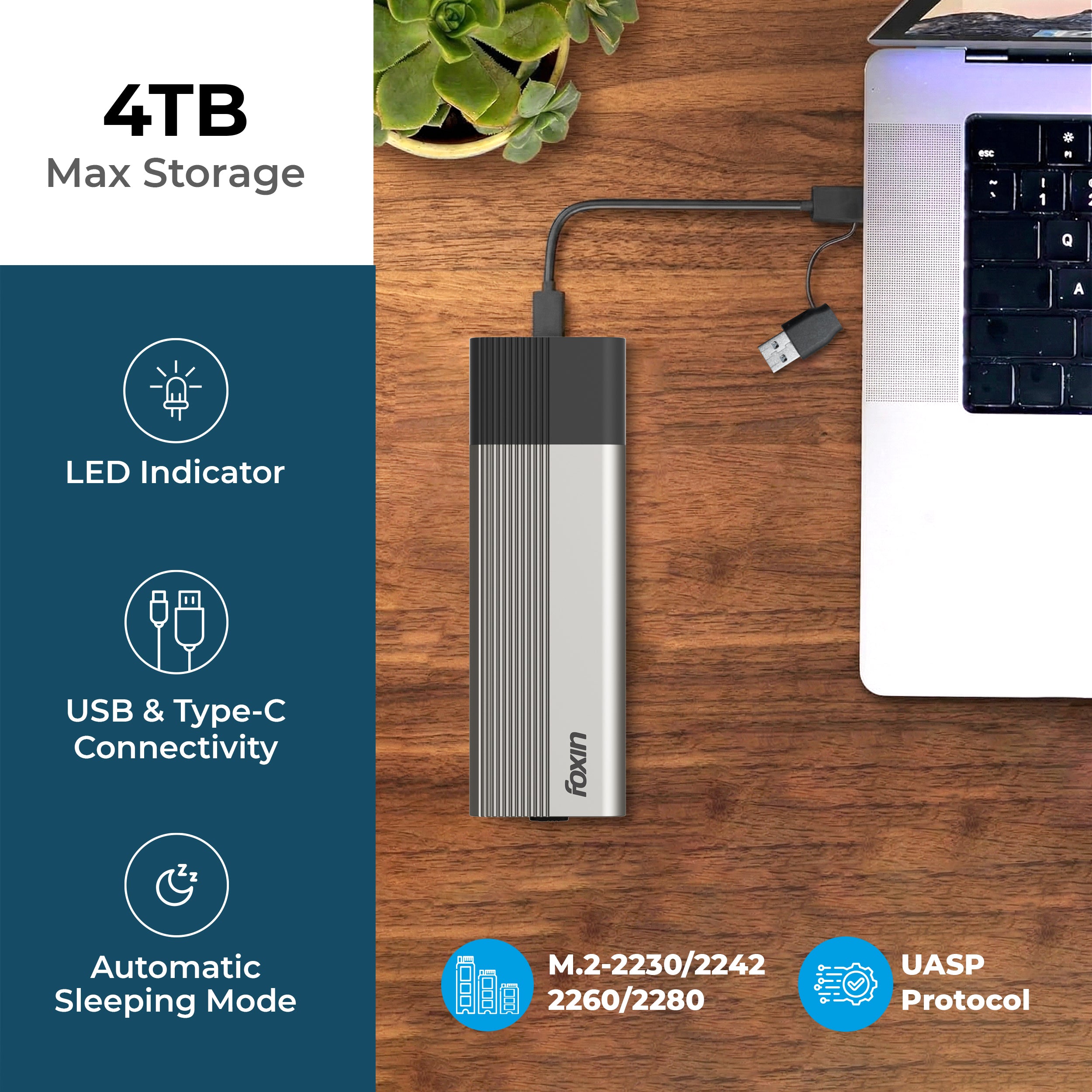 Supports NVMe / SATA | Upto 10Gbps Speed | Up to 4TB Storage