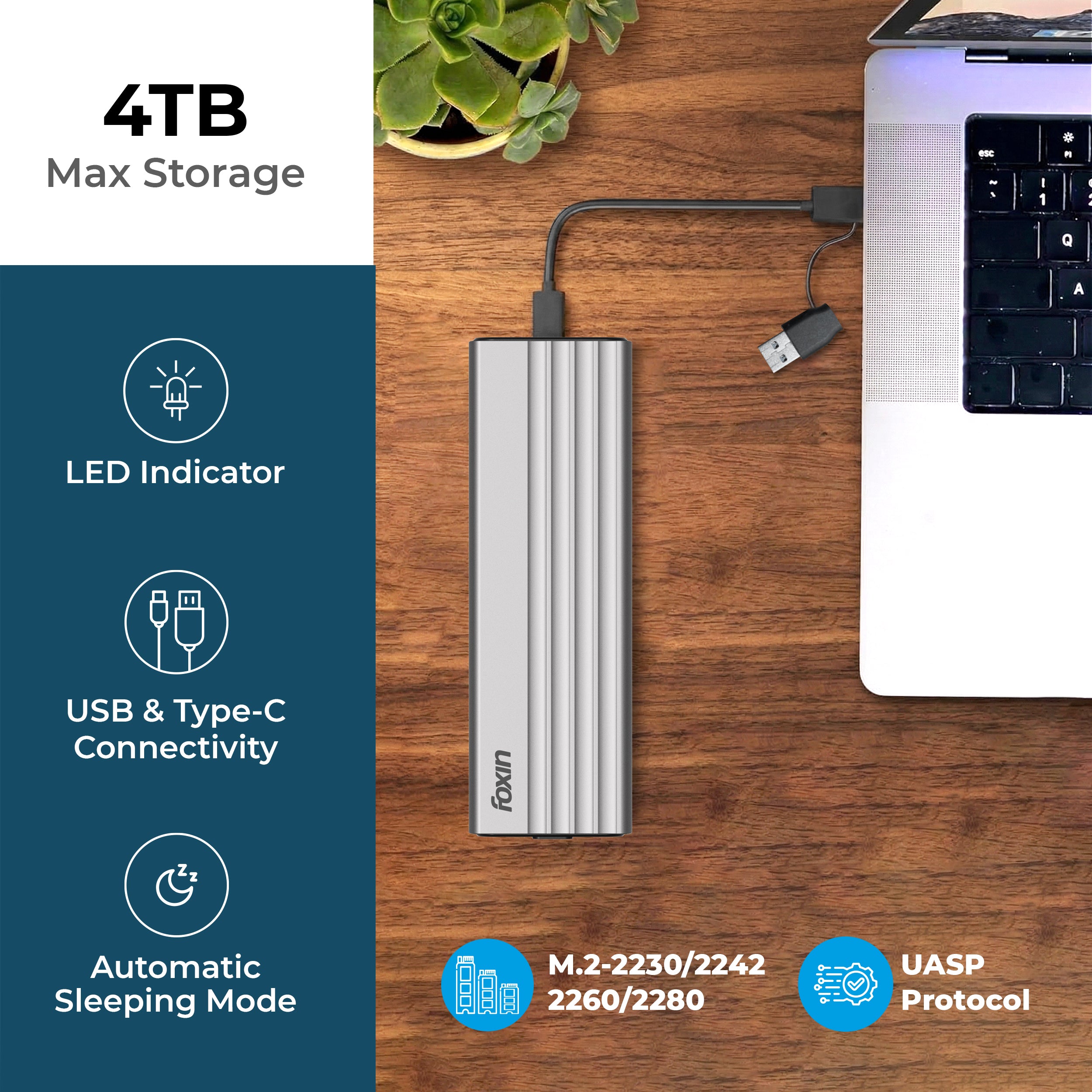 Supports NVMe / SATA | Upto 10Gbps Speed | Upto 4TB Storage